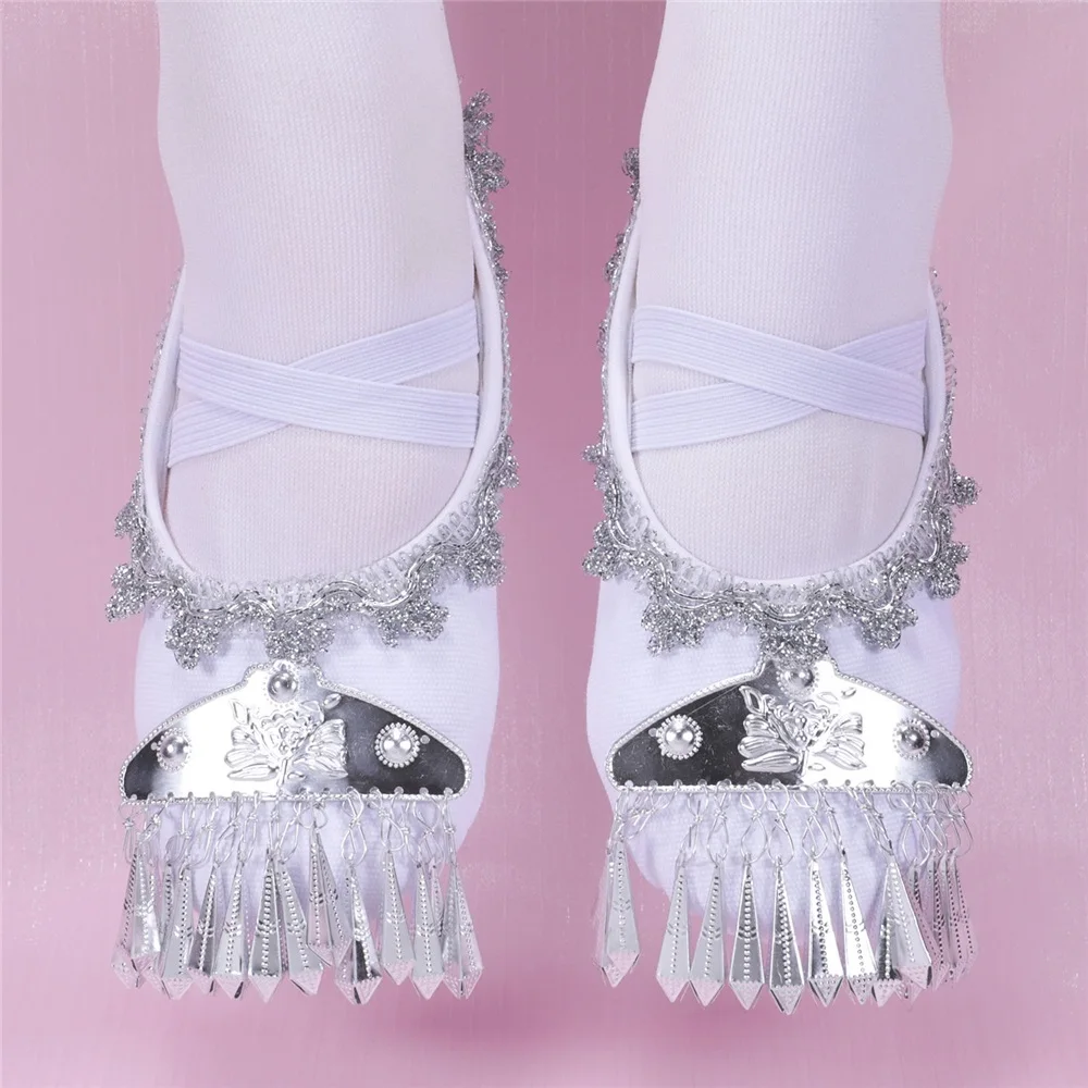 Girls' Folk Dance Training Shoes Soft-Soled Canvas Shoes Children's Ballet Classical Dance Performance Shoes